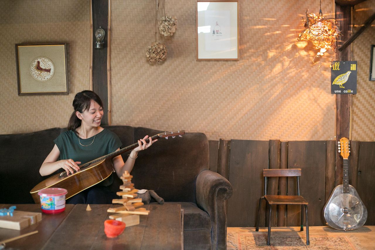 お風呂に入った後は、お酒を片手に友人と二人で語らったり、楽器を弾いたりして、 リラックスタイム~~~!