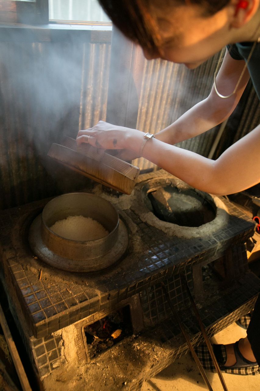 でも昔は釜の上に置いて、まきをくべて火を起こして炊いていたんですね。